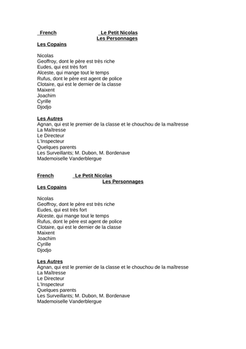Petit Nicolas by alexandra7294 | Teaching Resources from d1uvxqwmcz8fl1.cloudfront.net